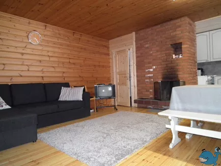 дровяная сауна (отдельное здание), электричество, горячая и холодная вода, камин, духовой шкаф, холодильник, микроволновая печь, кофеварка, сервиз на 6 персон, телевизор, радио, уличный гриль, гребная лодка, причал.