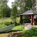 холодильник, эл.плита, посудомойка, стиральная машина, микроволновка, посуда и сервировка на 8 чел. , кофеварка, телевизор, радио, печь/камин, навес для барбекю, вёсельная лодка. Антенна для приема российских каналов. За доп. плату горячая бочка.